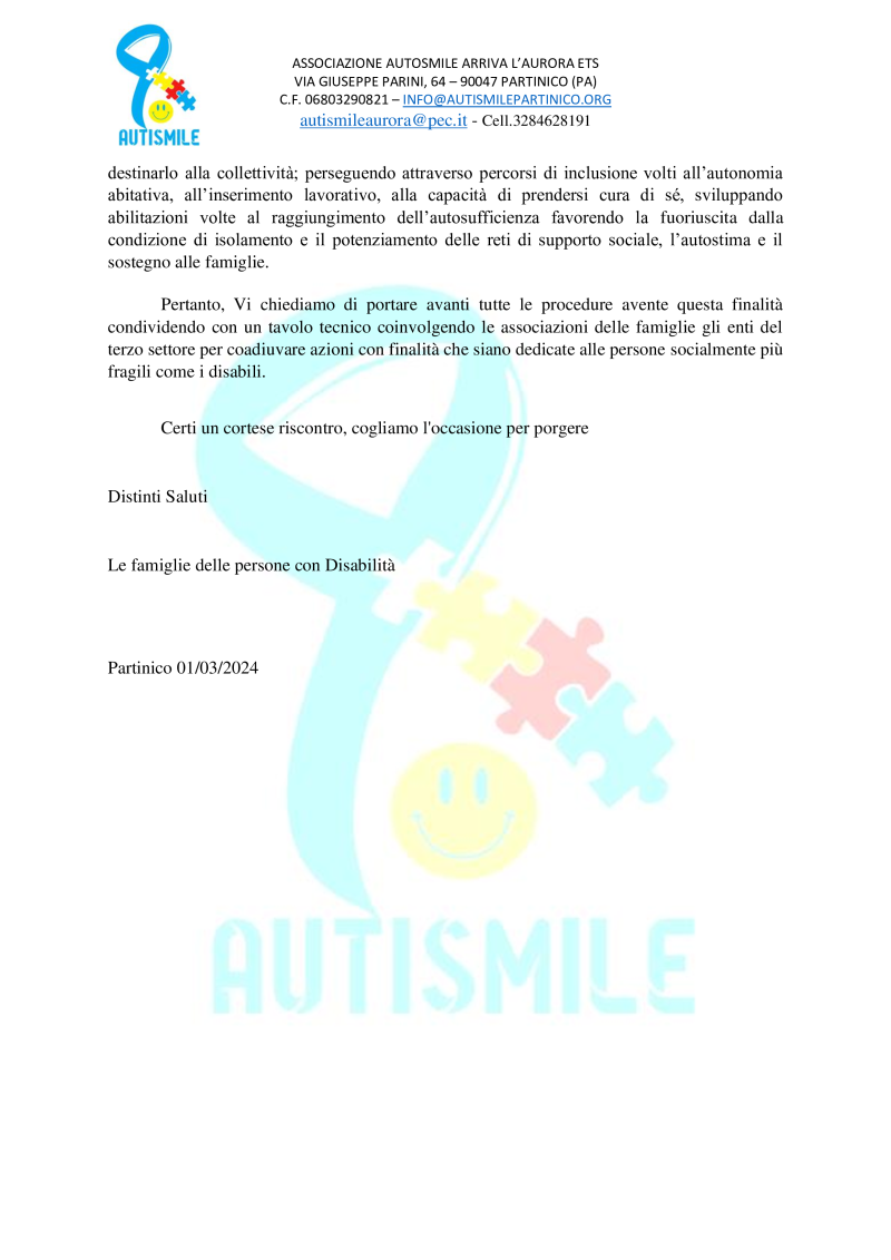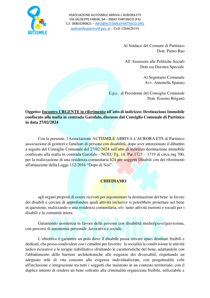 Richiesta incontro con il Sindaco di Partinico relativo alla delibera di giunta n, 117 del 10/07/2023